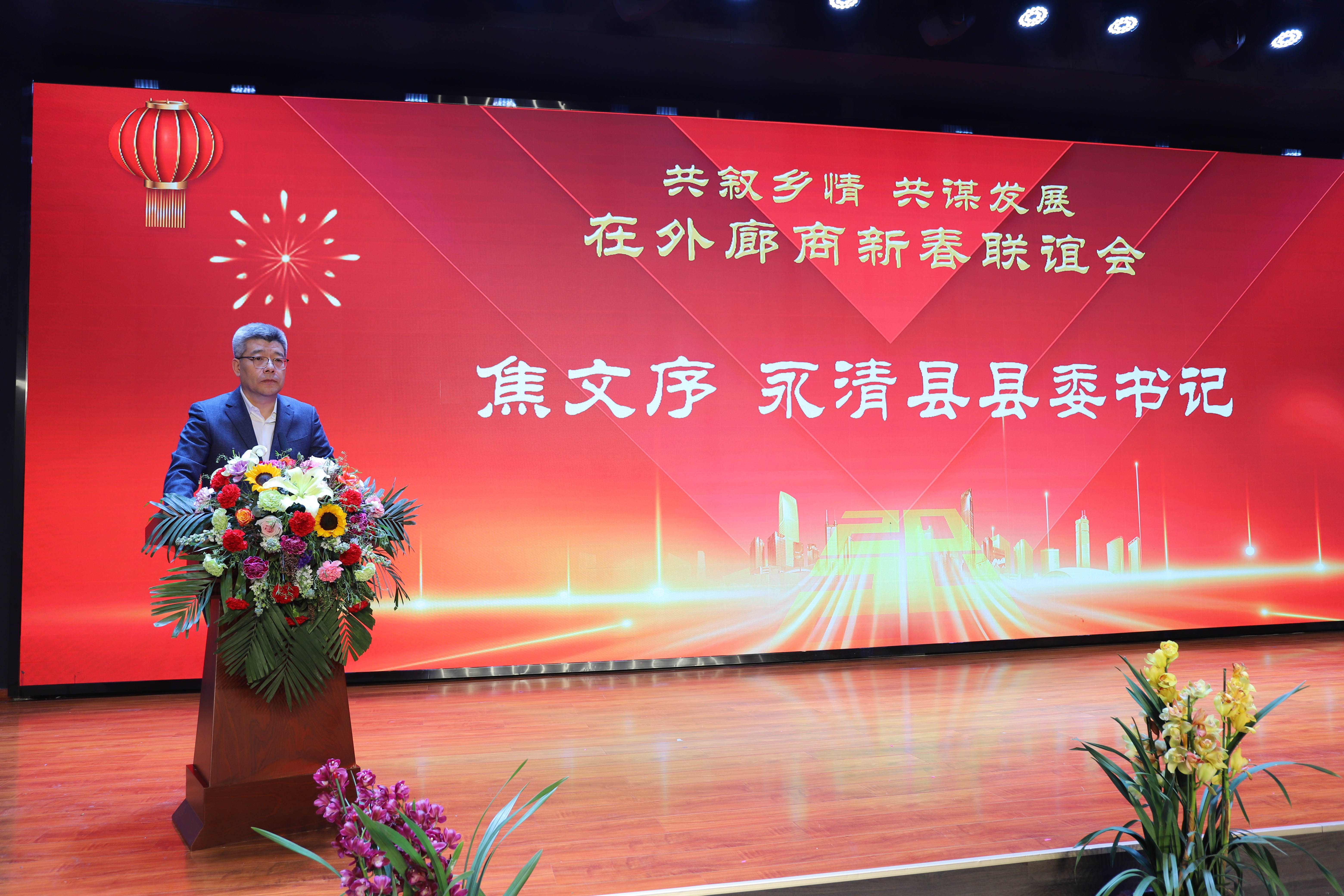 本次聯誼會(huì)由廊坊市工商聯常務副主席魏建自土主持。首先,永清縣委書記焦文序緻辭,并向(xiàng)與會(資火huì)嘉賓介紹永清發(fā)展情況。